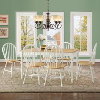 Solid Wood Dining Chairs, White and Oak (Set of 2)